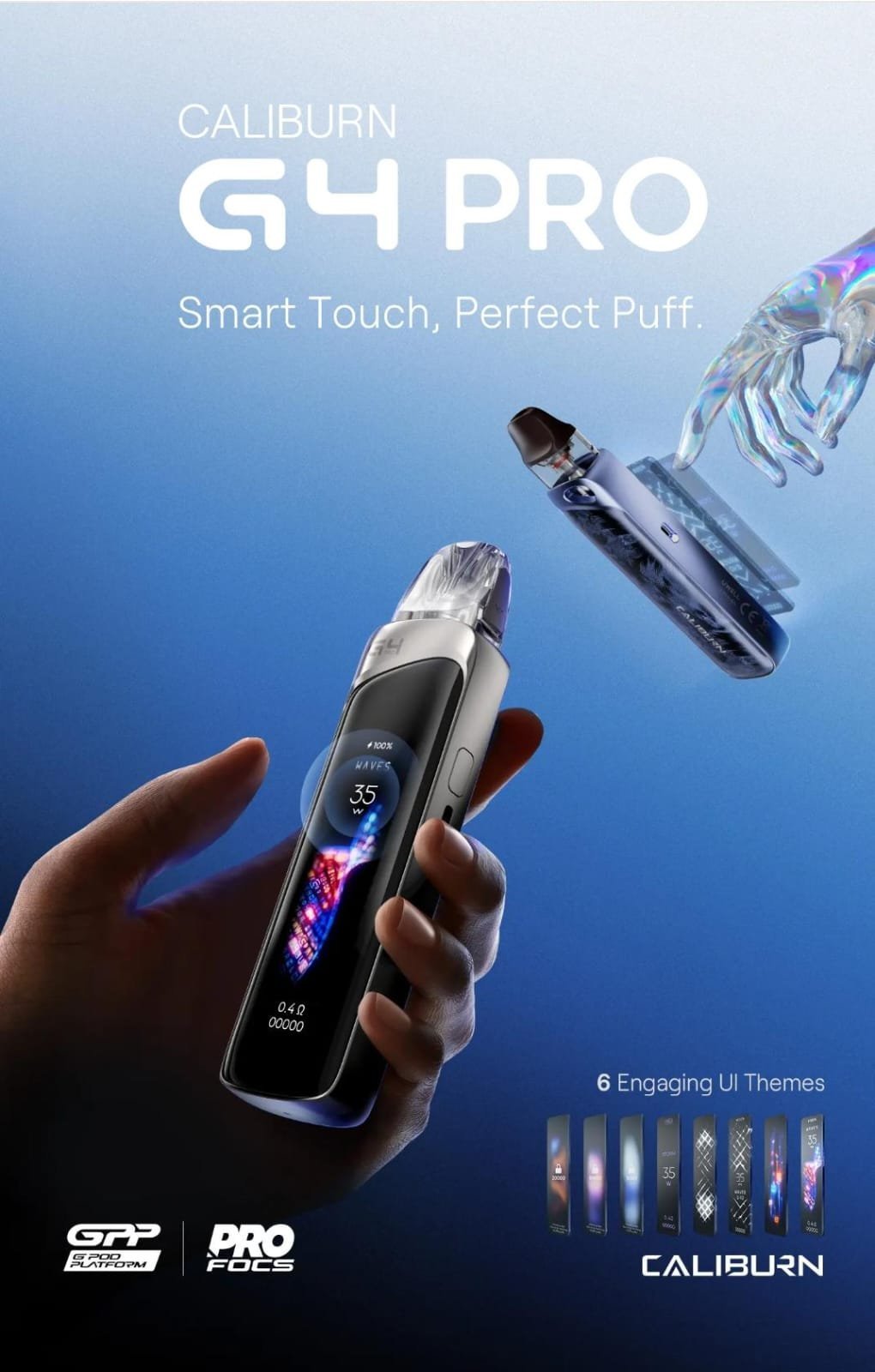The Uwell Caliburn G4 Pro Pod System Kit is a next-generation pod vape that blends superior performance with an easy-to-use design. With its 2.51-inch shatterproof touchscreen, stepless airflow control, and multiple smart vaping modes, the G4 Pro offers a highly customized experience. It can generate up to 35W and is fueled by a robust 1800mAh built-in battery. This device supports all CALIBURN GPP Series coils and caters to both MTL and RDL aficionados looking for power, control, and flair in a compact package.